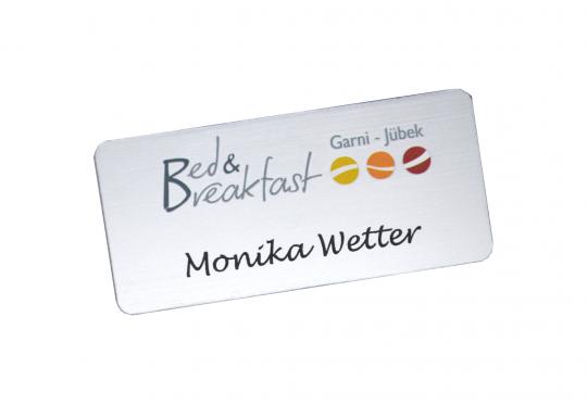 Unser Modell Classic ist aus zweischichtigem Kunststoff gefertigt. Dieses robuste und sehr leichte Namensschild eignet sich besonders für den täglichen Einsatz z.B. im Verkauf, in der Gastronomie oder in Klinikbetrieben. Die Logoanbringung und Personalisierung kann im Druckverfahren oder als Lasergravur erfolgen. In vielen verschiedenen Formaten erhältlich - Sonderformen auf Anfrage möglich. Gerne helfen wir Ihnen bei der Gestaltung.